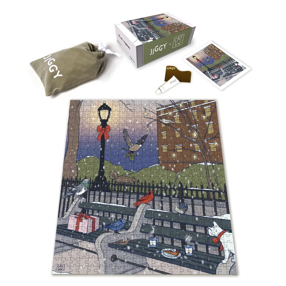 Each JIGGY Studio puzzle comes in a reusable drawstring bag and box. If you would like to preserve your masterpiece, add glue and tool to your cart for free.