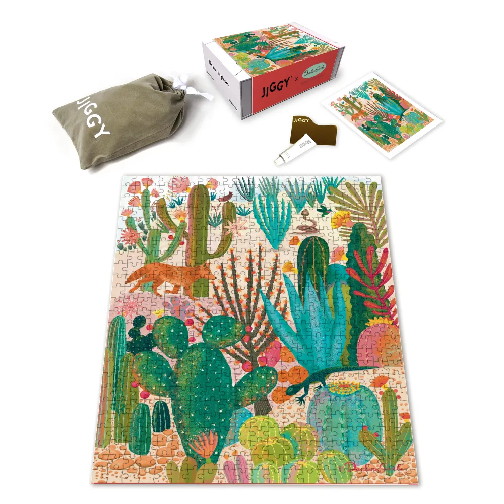 Each JIGGY Studio puzzle comes in a reusable drawstring bag and box. If you would like to preserve your masterpiece, add glue and tool to your cart for free.