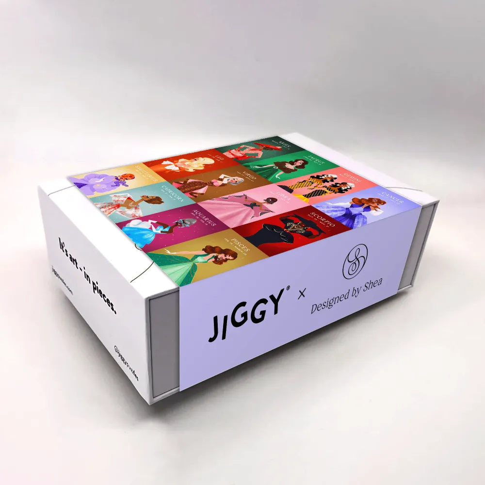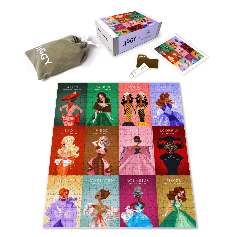 Each JIGGY Studio puzzle comes in a reusable drawstring bag and box. If you would like to preserve your masterpiece, add glue and tool to your cart for free.