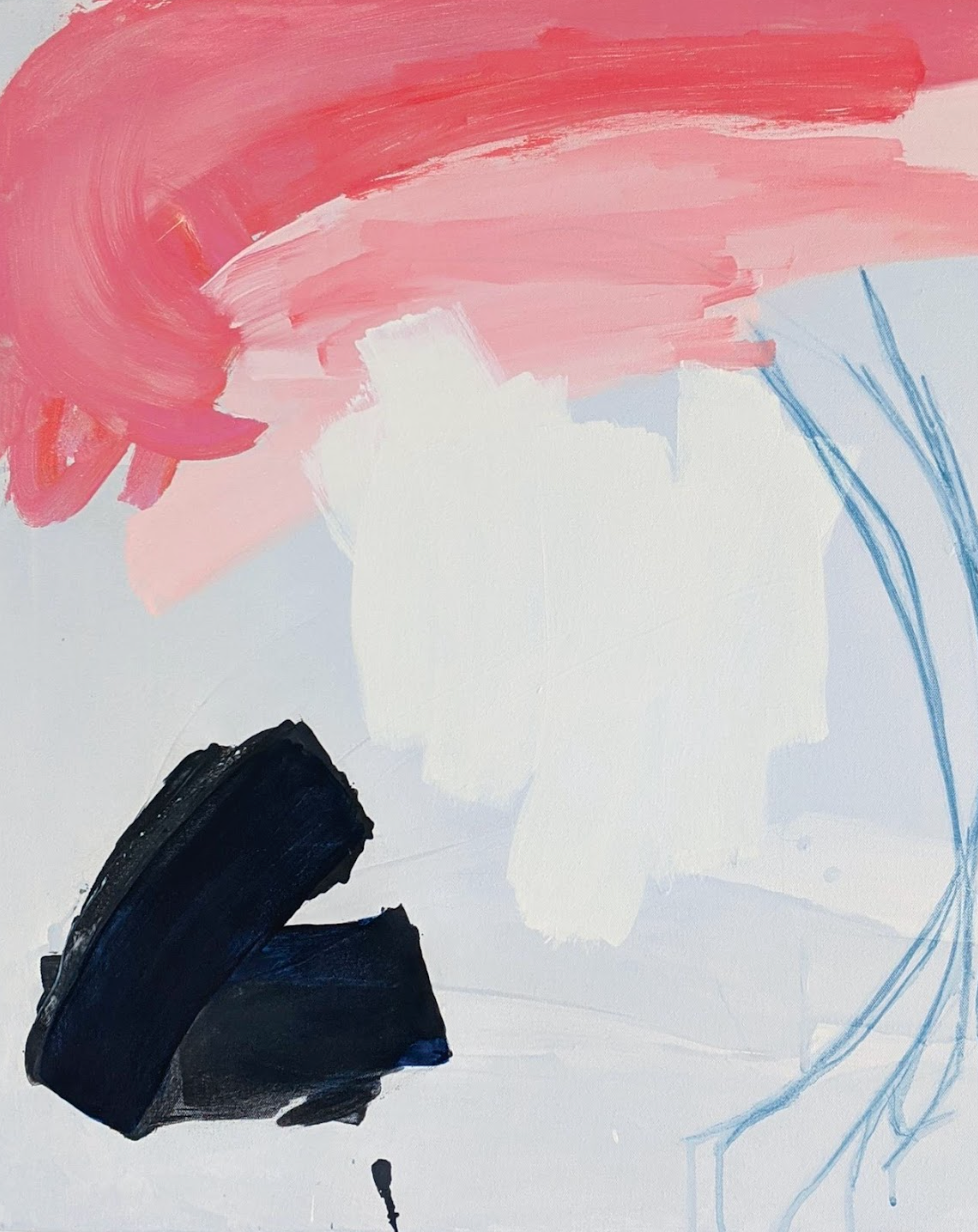 and movement. Raw compositions painted with considered color palettes demonstrate a marriage of her backgrounds in intuitive creativity and interior design.