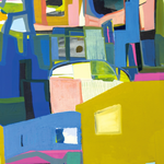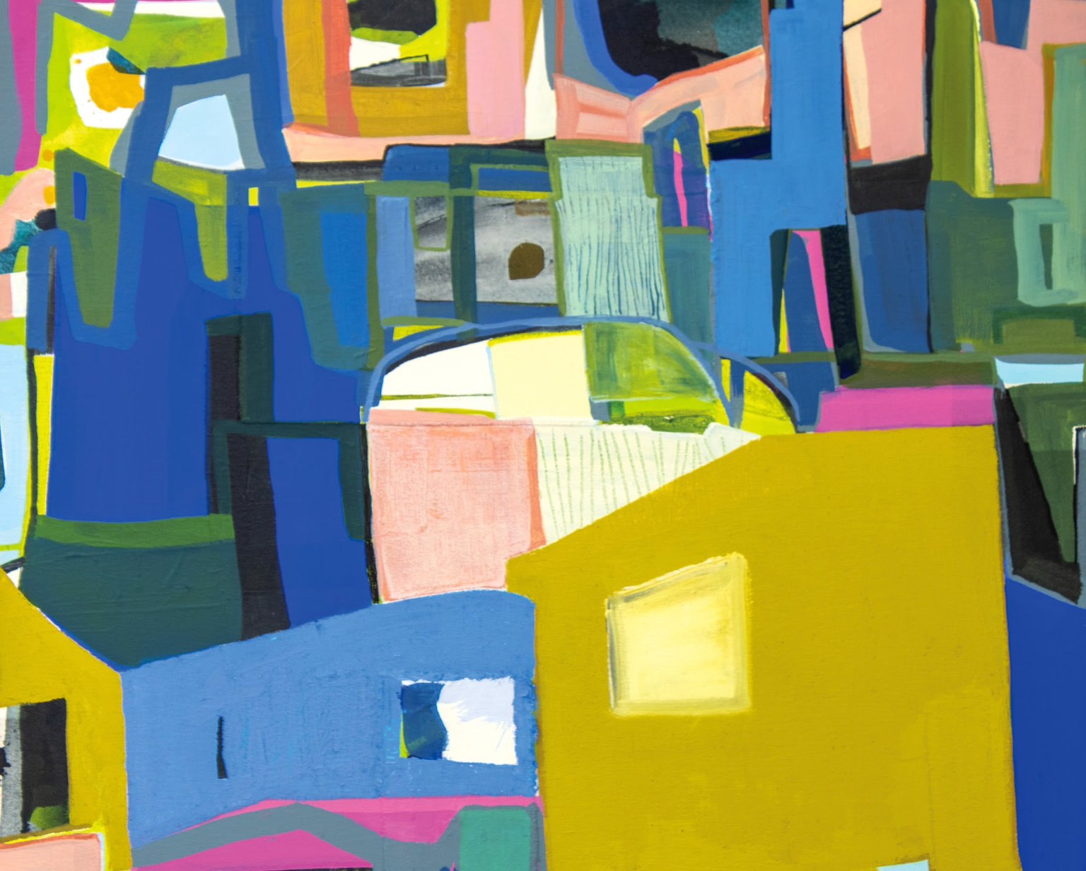 and movement. Raw compositions painted with considered color palettes demonstrate a marriage of her backgrounds in intuitive creativity and interior design.