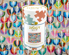 Each JIGGY Junior puzzle comes in a reusable cardboard tube and includes adhesive sheets to preserve your masterpiece.