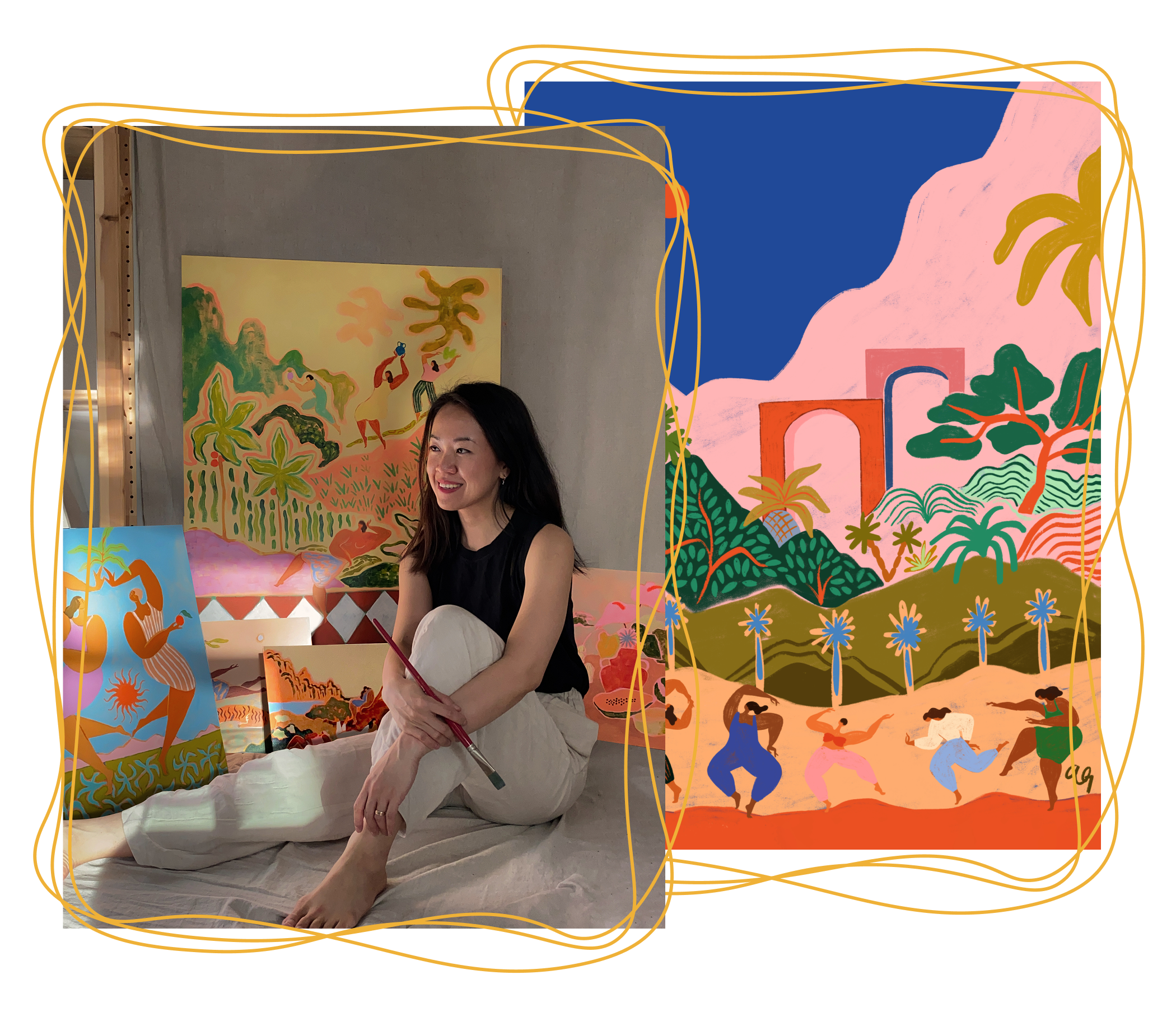 Artist and Illustrator, Lay Hoon Ho—aka Arty Guava—lives and works in Vancouver. Memories of her childhood in Malaysia, nature, and dance are just a few sources of inspiration recognisable throughout her work. Featuring vibrant flowers, celebratory poses, and animals moving freely through the wild, her joyful designs are sprinkled with a hint of fantasy and convey a buoyant lust for life.