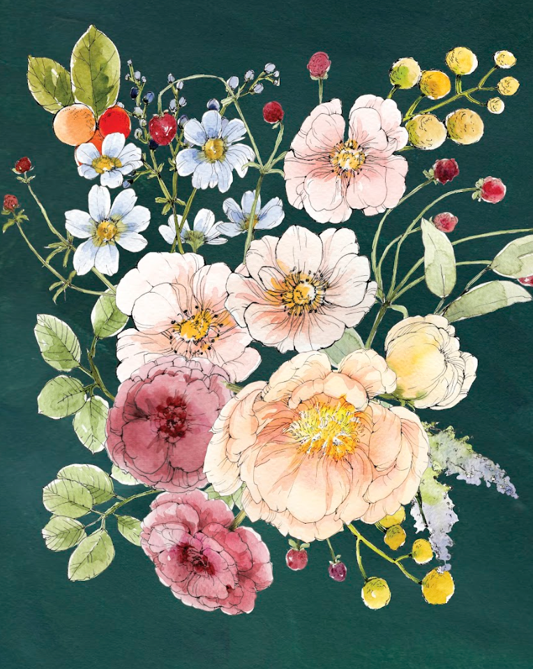 My name is Caverly and I’m a Canadian wife and mother of three, with a degree in fine art and illustration, who loves to draw and paint florals, birds, landscapes, and faces. I started my artistic journey, like most artists do, as a Disney-dreaming child. I can remember getting into trouble for drawing on the underside of my grandmother’s table cloth because I didn’t have any paper within arms reach. I left my vandalizing ways behind me and nowadays stick to more traditional media, like paper and canvas, watercolours, oils and inks.