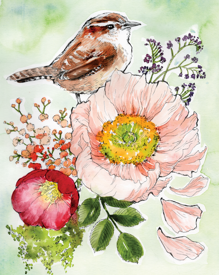 My name is Caverly and I’m a Canadian wife and mother of three, with a degree in fine art and illustration, who loves to draw and paint florals, birds, landscapes, and faces. I started my artistic journey, like most artists do, as a Disney-dreaming child. I can remember getting into trouble for drawing on the underside of my grandmother’s table cloth because I didn’t have any paper within arms reach. I left my vandalizing ways behind me and nowadays stick to more traditional media, like paper and canvas, watercolours, oils and inks.