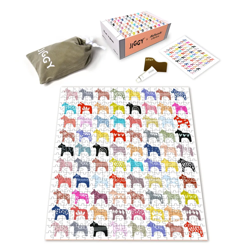 Each JIGGY Studio puzzle comes in a reusable drawstring bag and box. If you would like to preserve your masterpiece, add glue and tool to your cart for free.