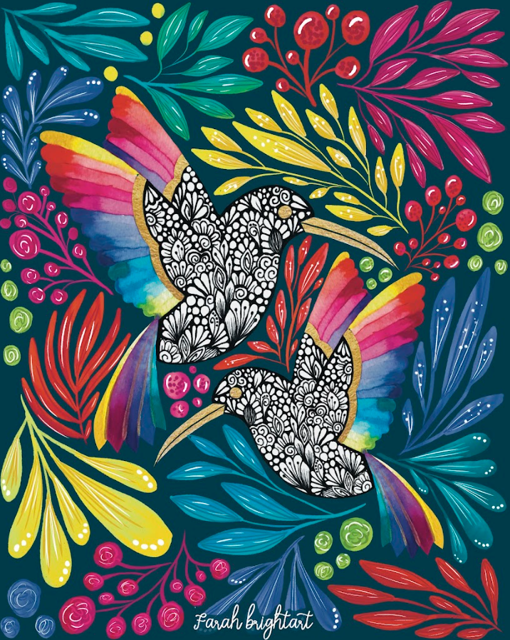 Hummingbird in a Rainbow Garden by Farah Brightart