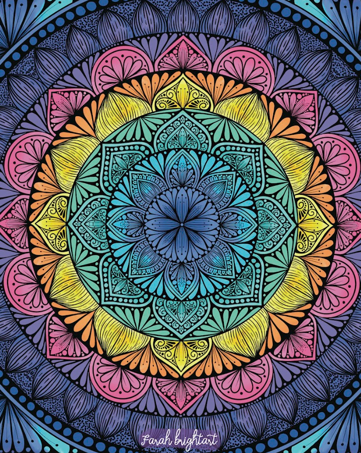 Her name is farah Alhamawi but known as Farahbrightart. She's a mandala and zentangle artist, a watercolor illustrator and a small business owner who wants to spreed the colors and the joy in everywhere around the world. When she is not painting or designing, you can find her gardening, planning family trips or baking while trying to keep up with her two little ones.