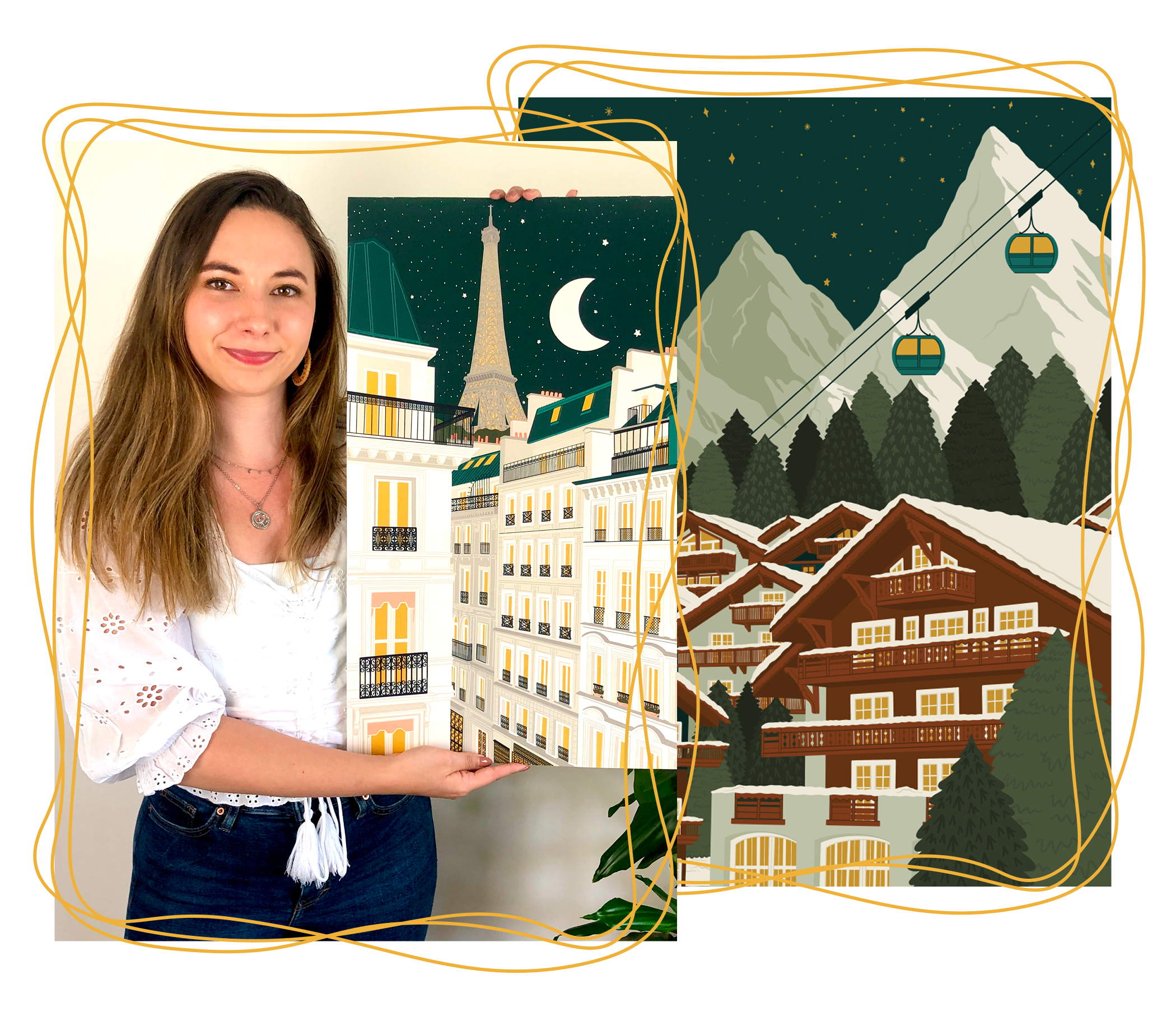 Jess is a digital illustrator based in Suffolk, UK, creating vibrant artwork inspired by picturesque destinations. With a background in textile design, she discovered digital illustration and instantly fell in love, eventually turning her growing portfolio into a full-time creative business.