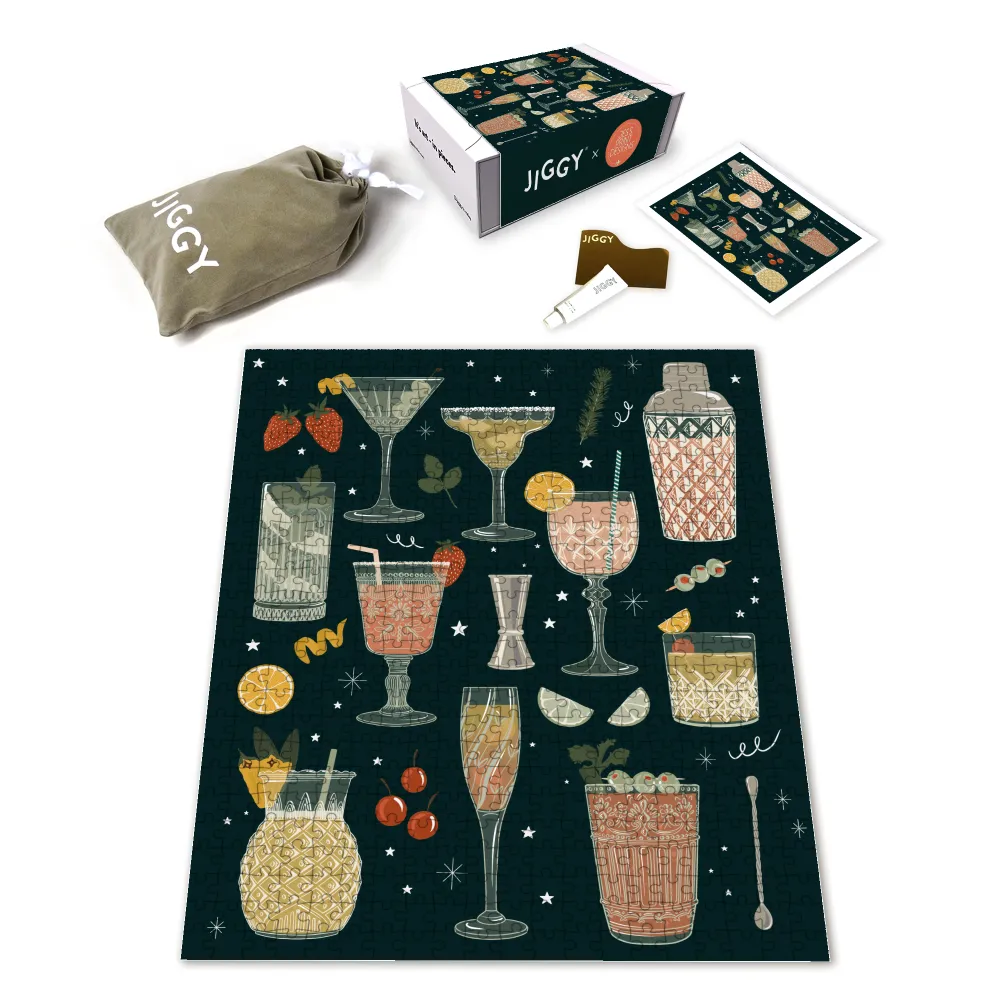 Each JIGGY Studio puzzle comes in a reusable drawstring bag and box. If you would like to preserve your masterpiece, add glue and tool to your cart for free.