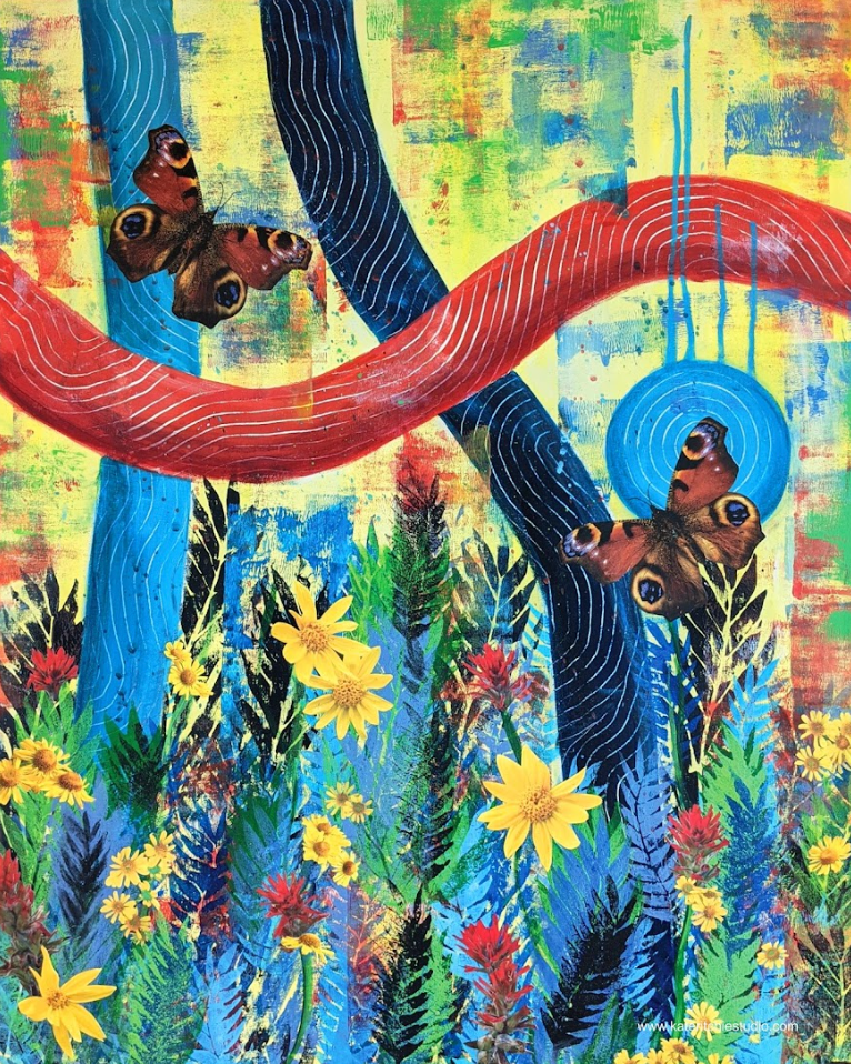 I'm a mixed media collage artist from Charleston, SC! I draw inspiration from nature, sacred geometry, color, pattern, and spirituality. You will often see themes of mandalas, halos, and archways incorporated in my work.
