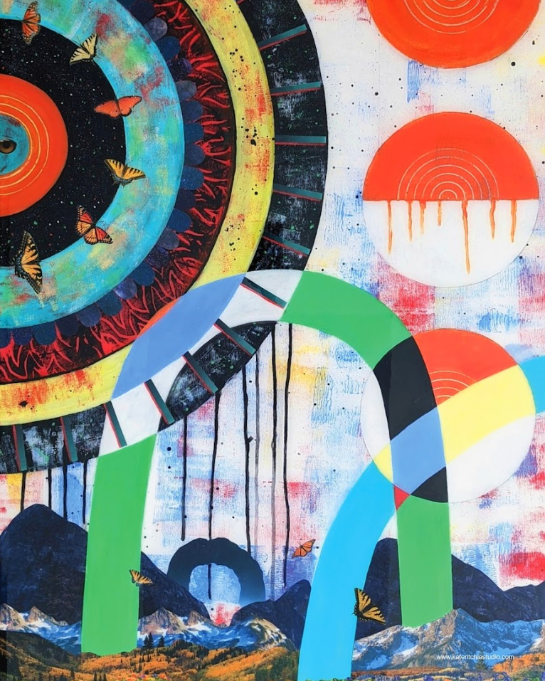 I'm a mixed media collage artist from Charleston, SC! I draw inspiration from nature, sacred geometry, color, pattern, and spirituality. You will often see themes of mandalas, halos, and archways incorporated in my work.