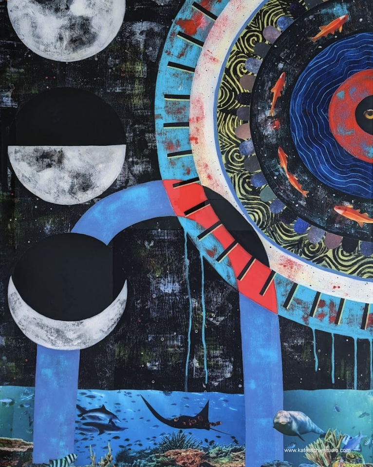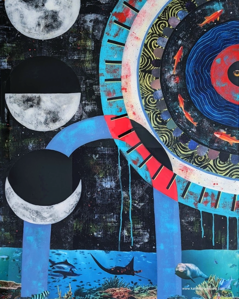 I'm a mixed media collage artist from Charleston, SC! I draw inspiration from nature, sacred geometry, color, pattern, and spirituality. You will often see themes of mandalas, halos, and archways incorporated in my work.