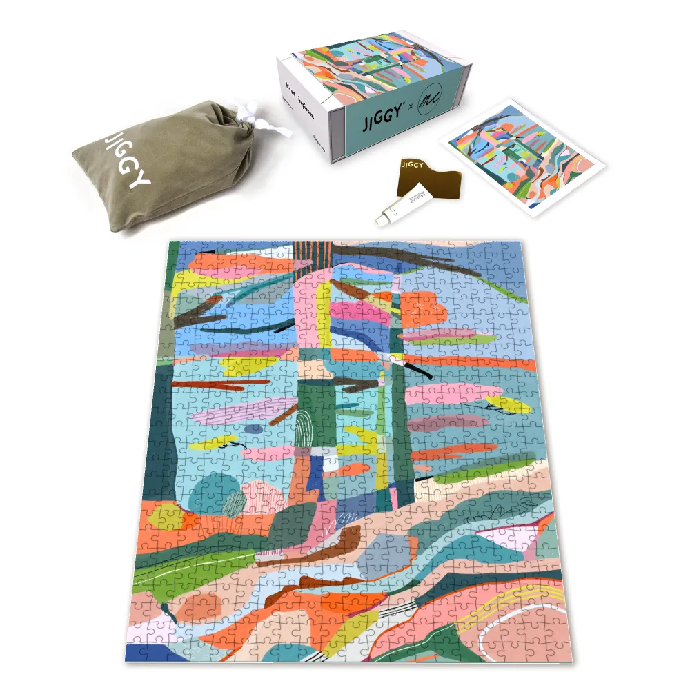 Each JIGGY Studio puzzle comes in a reusable drawstring bag and box. If you would like to preserve your masterpiece, add glue and tool to your cart for free.