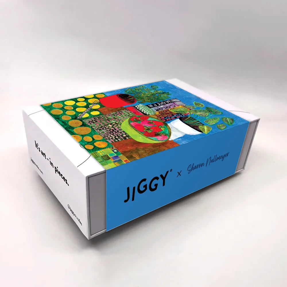 Each JIGGY Studio puzzle comes in a reusable drawstring bag and box. If you would like to preserve your masterpiece, add glue and tool to your cart for free.