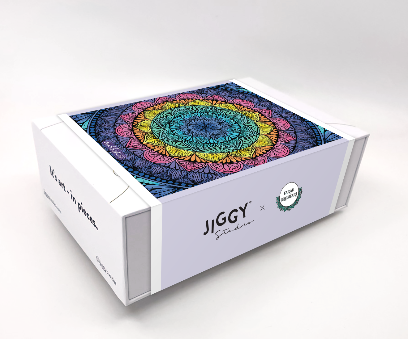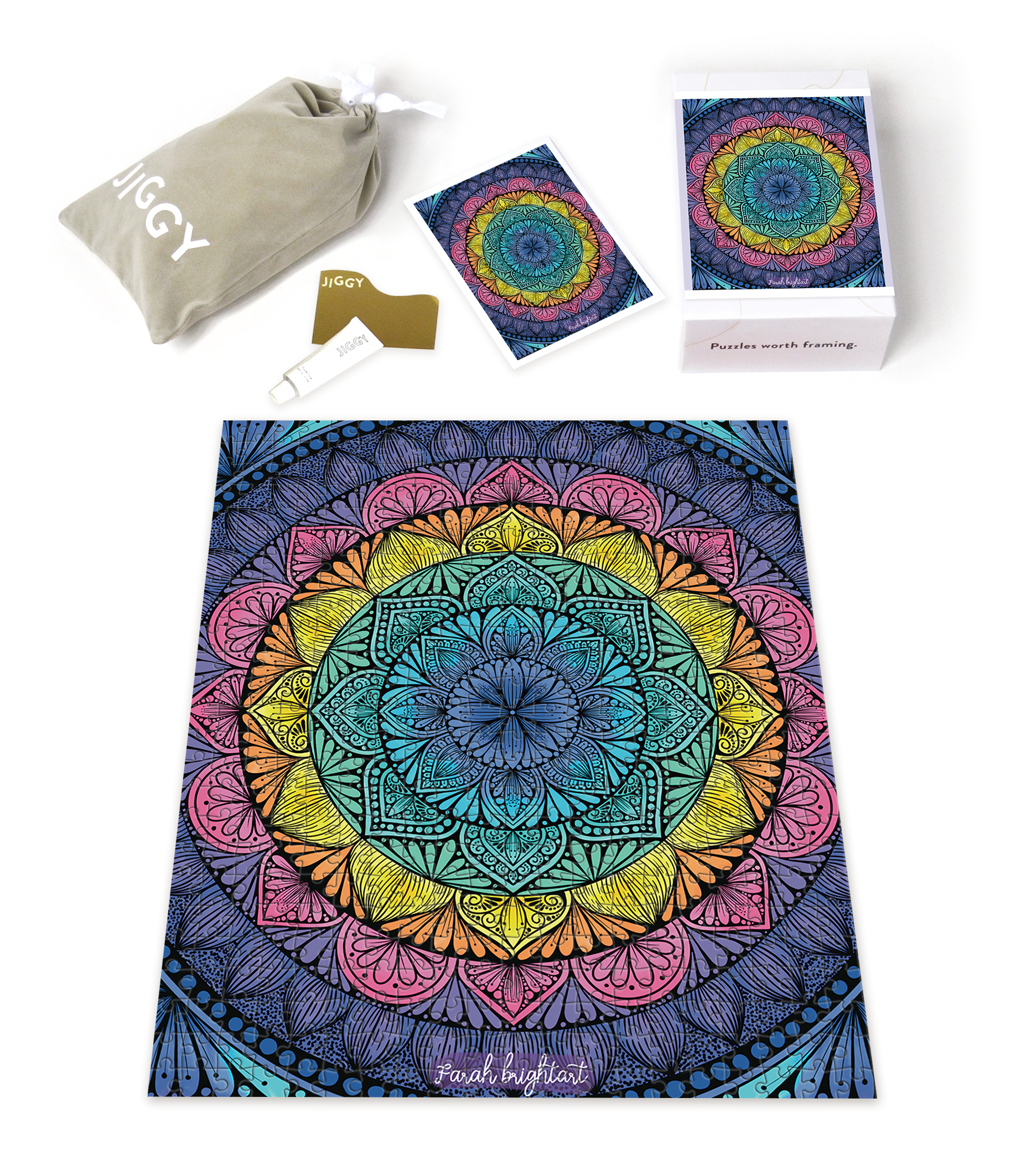 Each JIGGY Studio puzzle comes in a reusable drawstring bag and box. If you would like to preserve your masterpiece, add glue and tool to your cart for free.