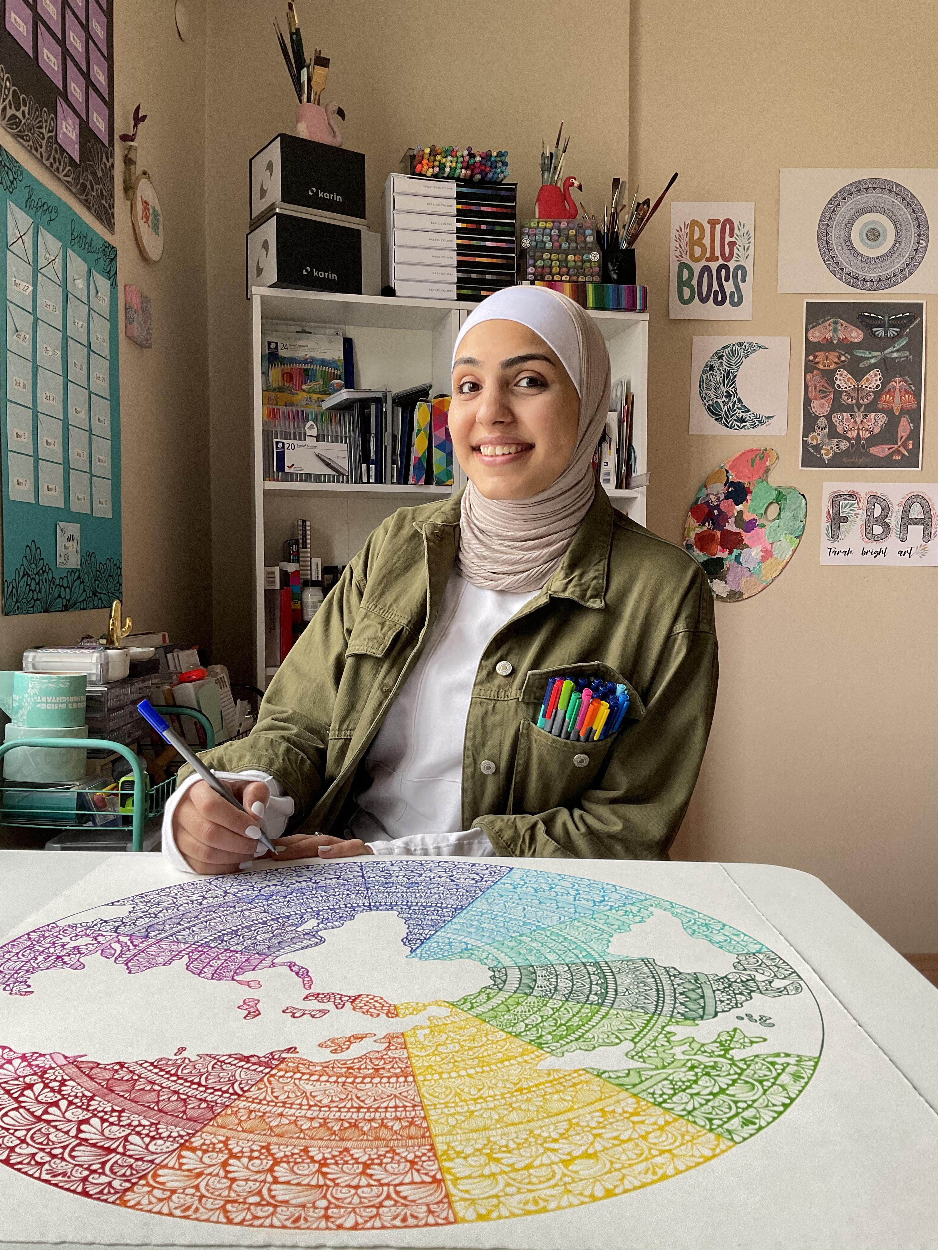 Her name is farah Alhamawi but known as Farahbrightart. She's a mandala and zentangle artist, a watercolor illustrator and a small business owner who wants to spreed the colors and the joy in everywhere around the world. When she is not painting or designing, you can find her gardening, planning family trips or baking while trying to keep up with her two little ones.